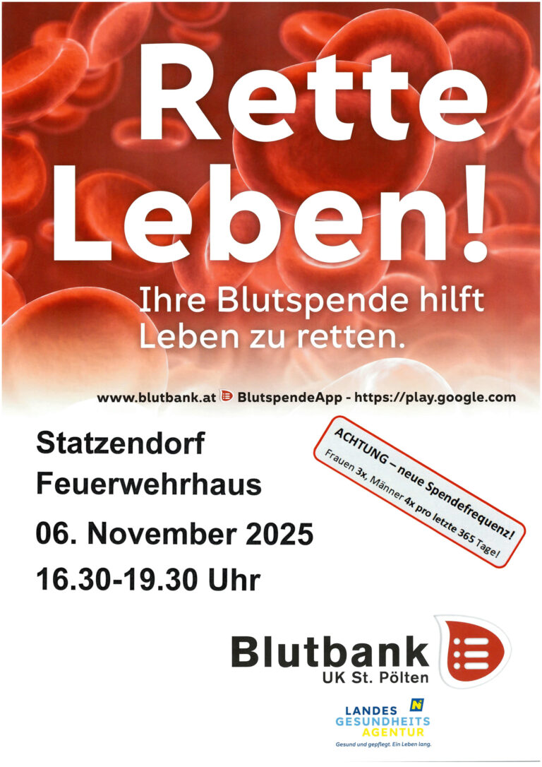6. Nov.: Blutspenden im FF-Haus Statzendorf, 16:30 - 19:30