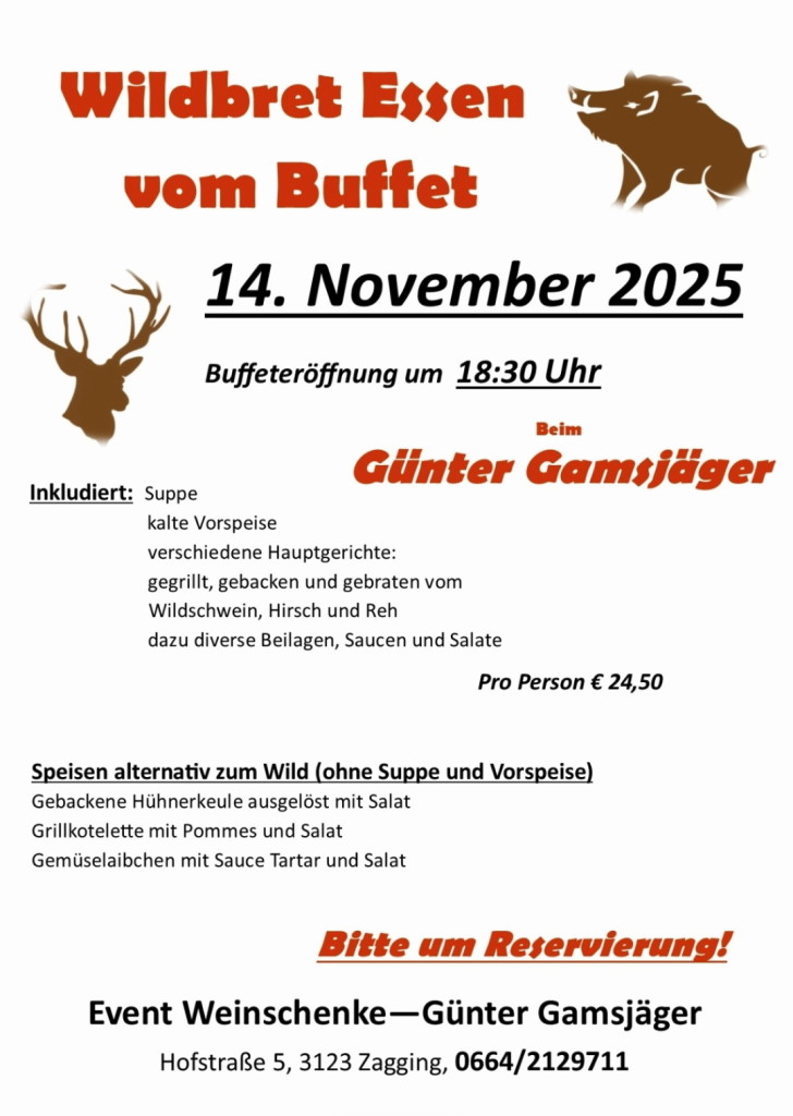 14. Nov.: "Wildbret-Buffet", Eventweinschenke Gamsjäger