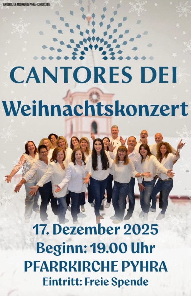 17. Dez.: "Weihnachtskonzert" von Cantores Dei, 19 Uhr, Pfarrkirche Pyhra, freie Spenden