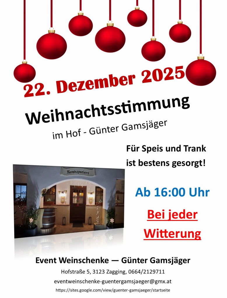 22. Dez.: "Weihnachtsstimmung", im Hof Günter Gamsjäger, ab 16 Uhr