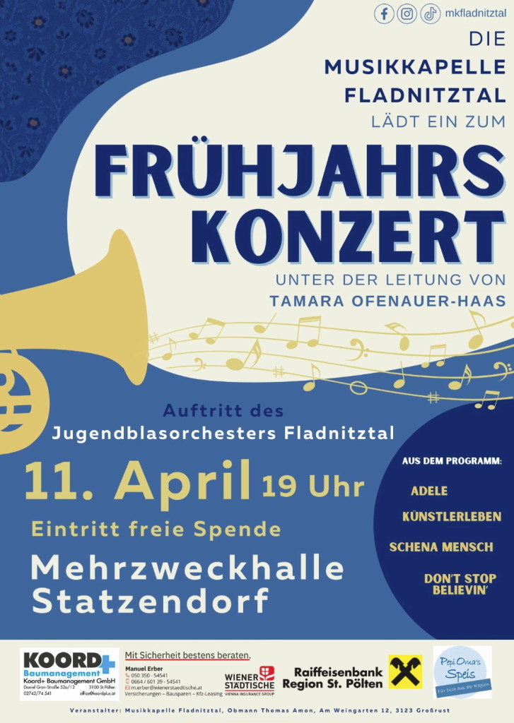 11. April: MK Fladnitztal "Frühjahrskonzert", Mehrzweckhalle Statzendorf