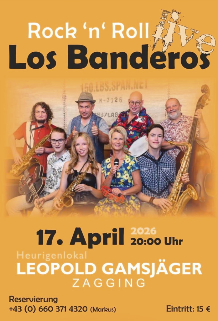 17. April: "Los Banderos - Rock´n Roll", 20 Uhr, Weinschenke Vroni Gamsjäger, Reservierung erbeten