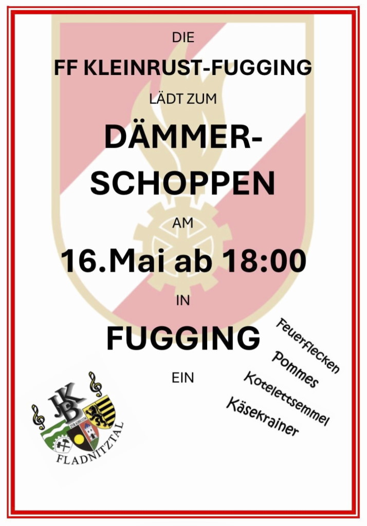 16. Mai: "Dämmerschoppen" der FF Kleinrust-Fugging, ab 18 Uhr