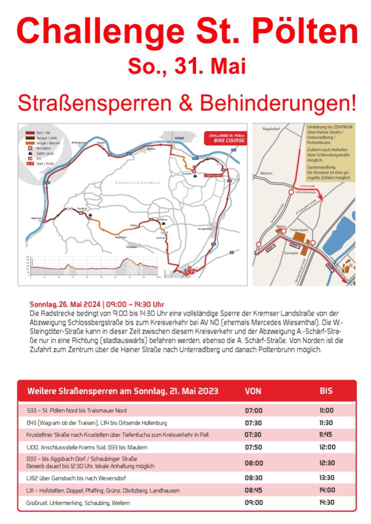 31. Mai: "Challenge St. Pölten", Verkehrsbehinderungen!