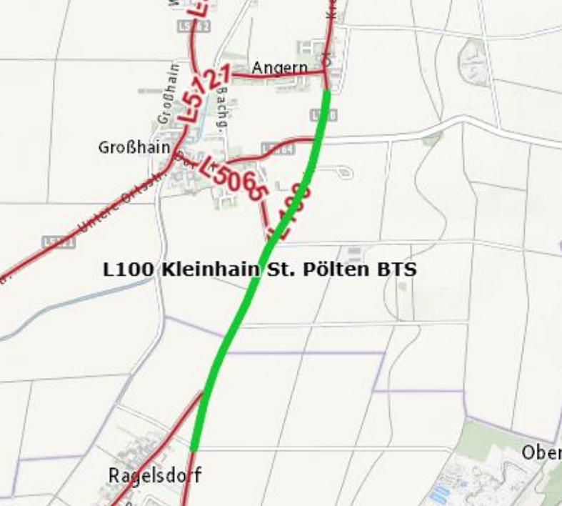13. - 25. Juli: Fahrbahnerneuerung L 100 zwischen Ragelsdorf und Kleinhain (Totalsperre 1 Woche)
